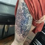Tetování květiny a mandaly na stehně