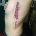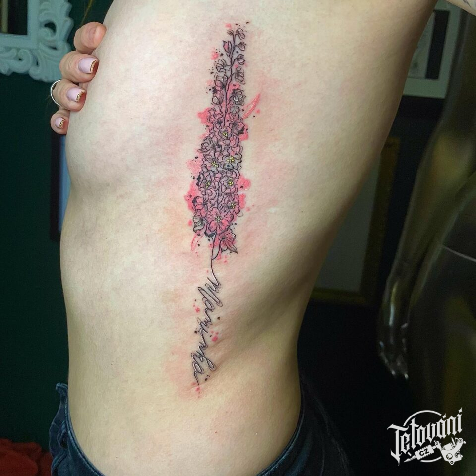 Tetování květiny a nápis maminka na žebra