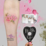 Tetování květiny a obrys rodiny na předloktí