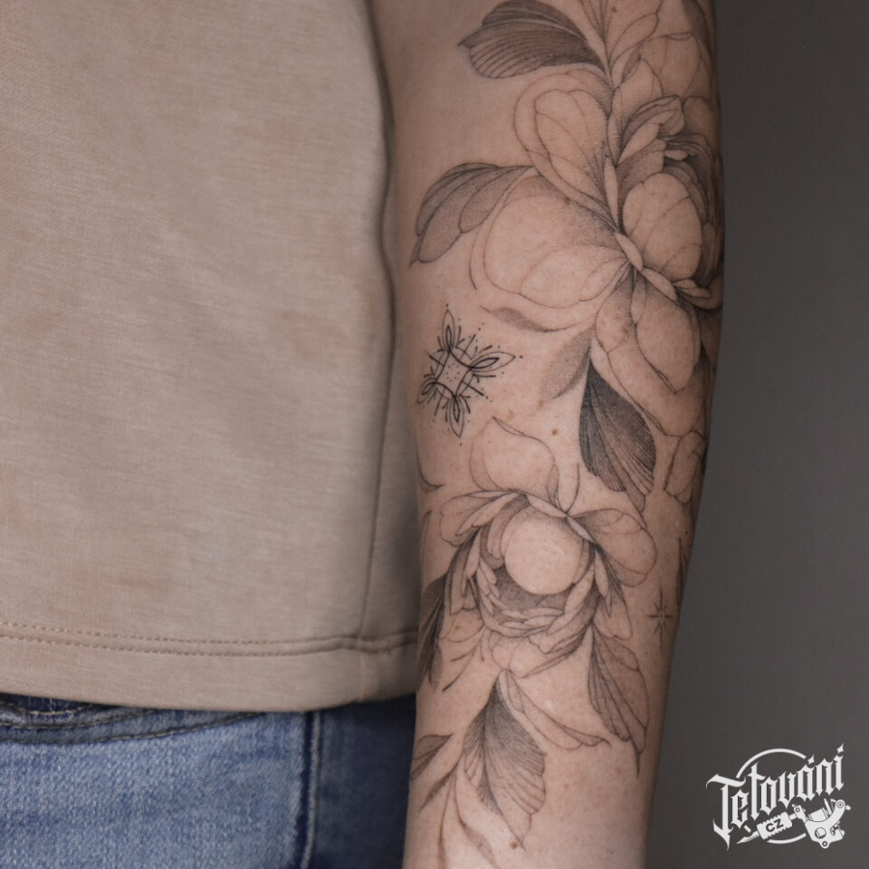Tetování květiny a ornament na předloktí