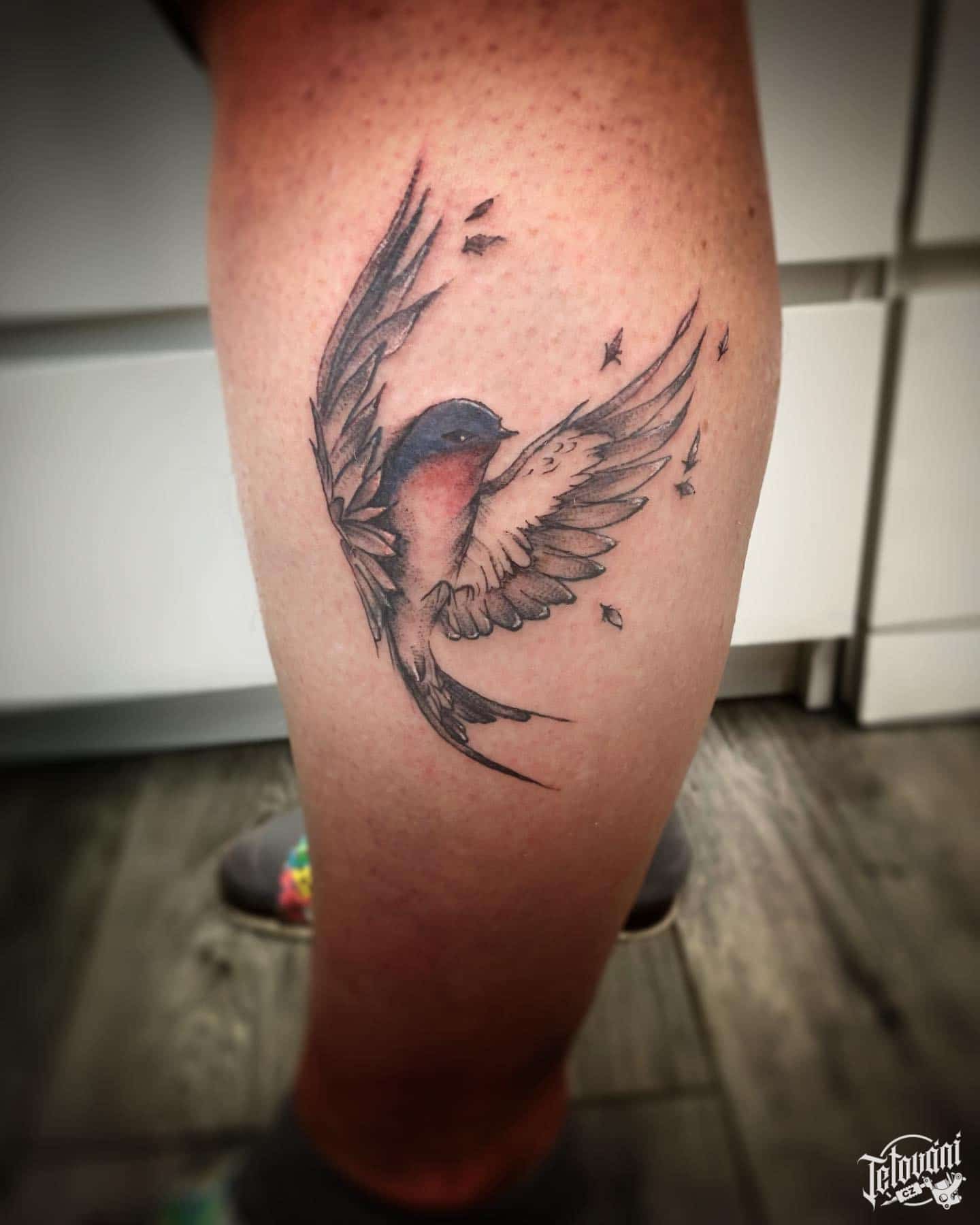 Tetování květiny a ptáci na předloktí