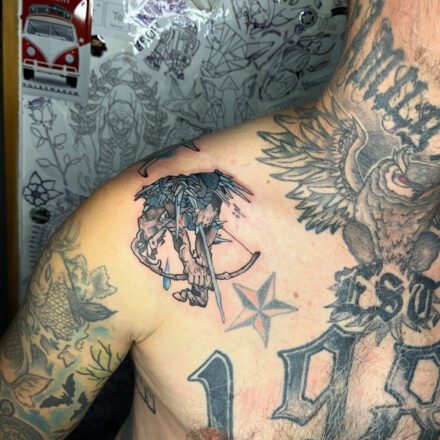 Tetování květiny a šíp...