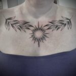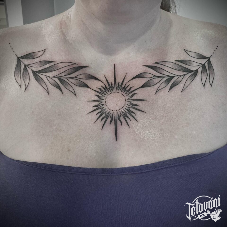 Tetování květiny a slunce na hrudníku