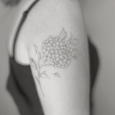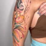 Tetování květiny a srdce na rameni