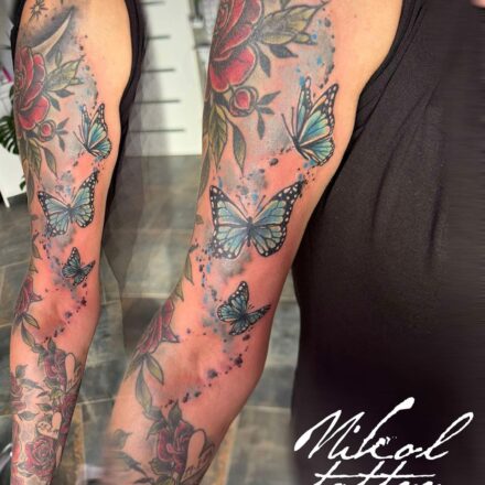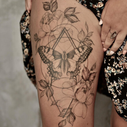 Tetování květiny a zvířata, motýl na předloktí