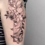 Tetování květiny a zvířata, motýl na rameni