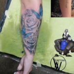 Tetování květiny a zvířata, růže a motýli na předloktí