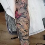 Tetování květiny a zvířata, sakura, motýl, rukáv