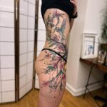 Tetování květiny a zvíře kolibřík na bok