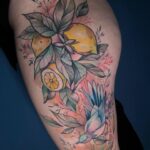 Tetování květiny a zvíře, pták na boku stehna