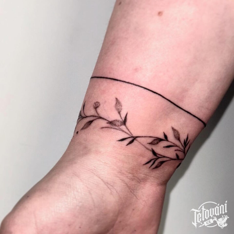 Tetování květiny, čára kolem ruky na zápěstí