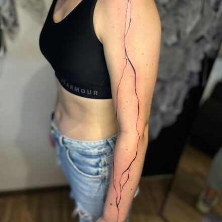 Tetování květiny, čáry na předloktí