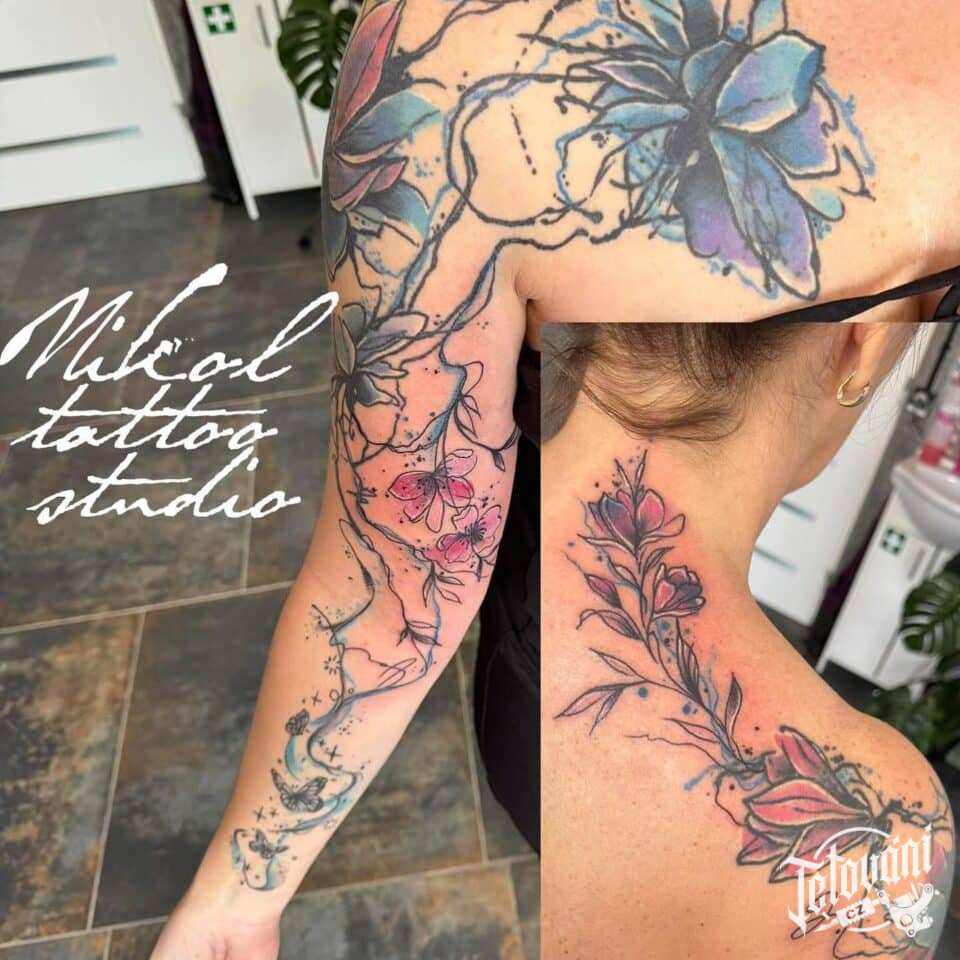 Tetování květiny, čáry...