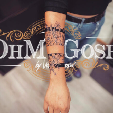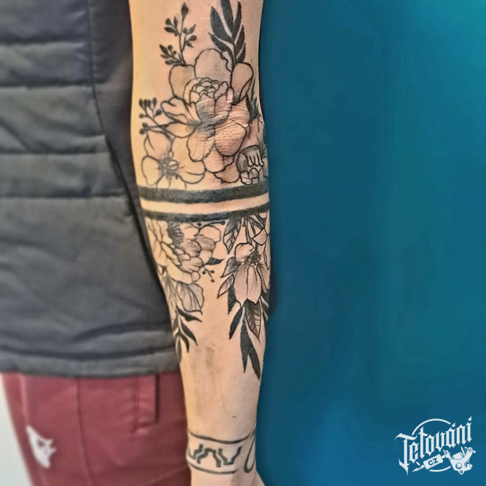 Tetování květiny, čáry, pruhy na ruku