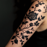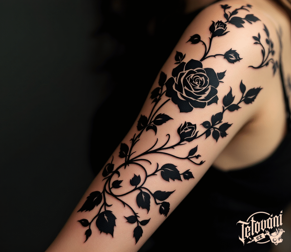 Tetování květiny, černé malé růže n rameni