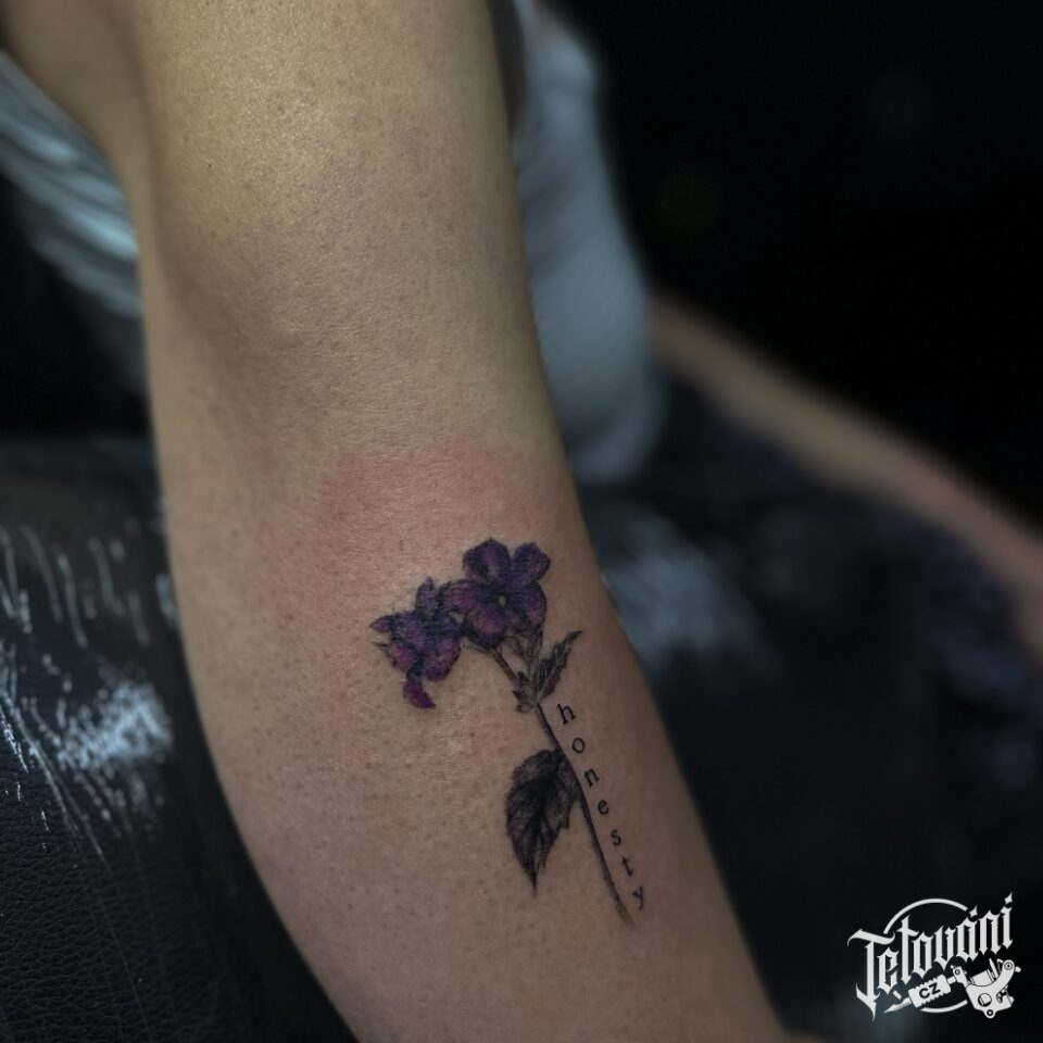 Tetování květiny, fialka na paži