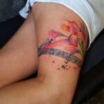 Tetování květiny, hudba, noty na bok stehna