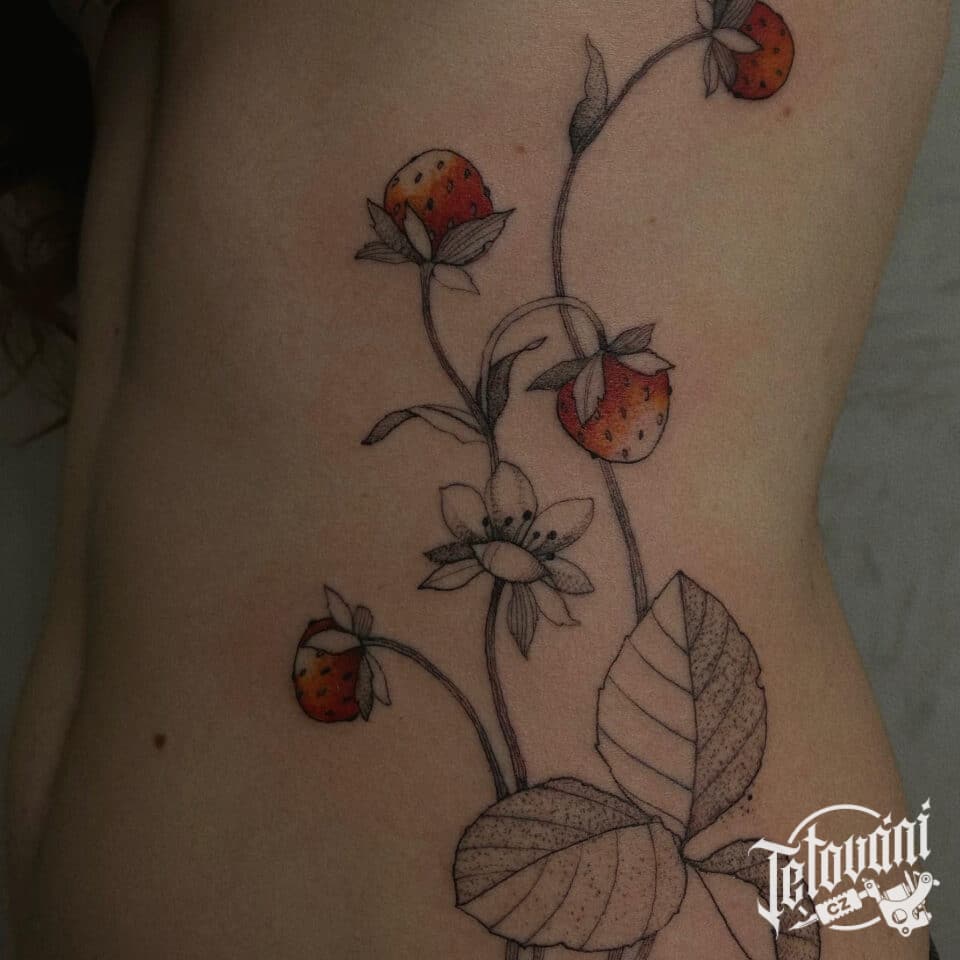 Tetování květiny, jahodovník na žebrech