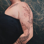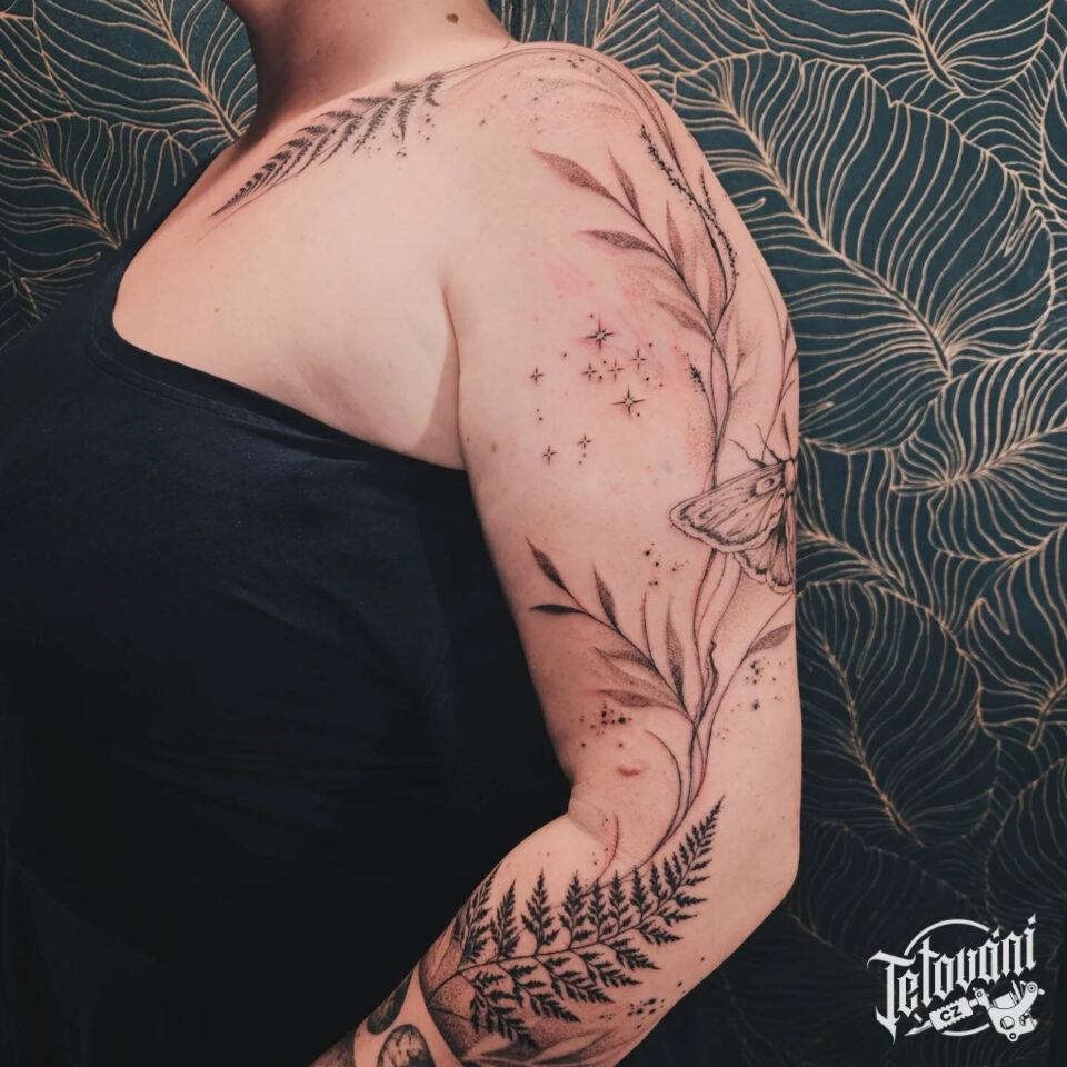 Tetování květiny, kapradí, zvíře motýl na ruku