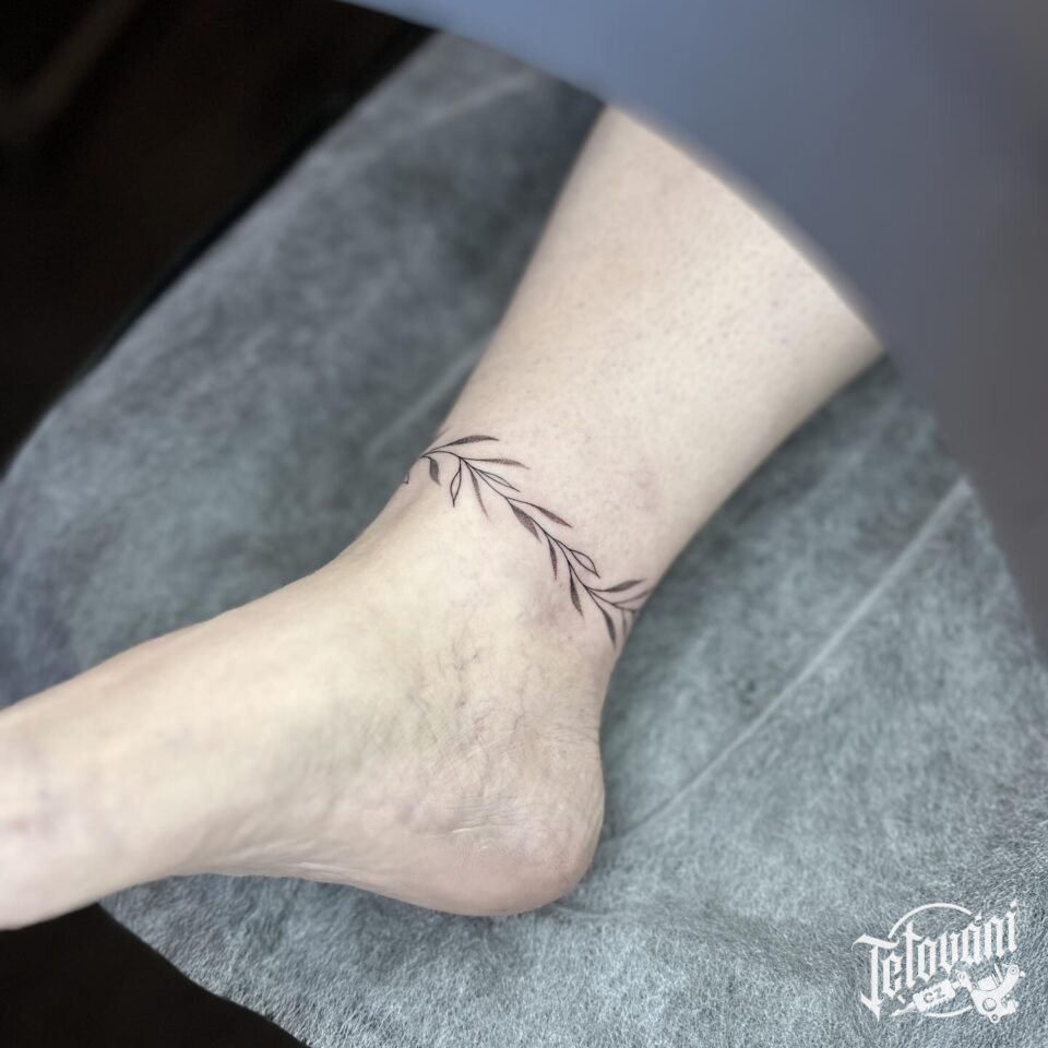 Tetování květiny kolem kotníku