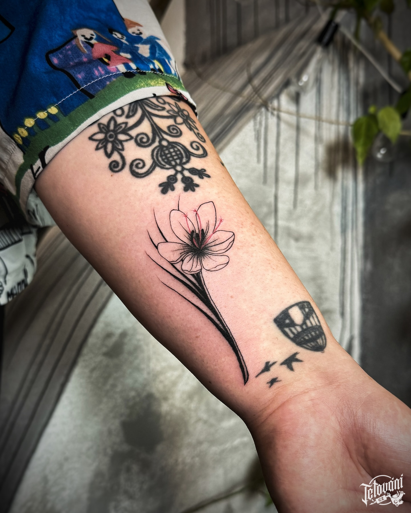 Tetování květiny kolem ruky na zápěstí