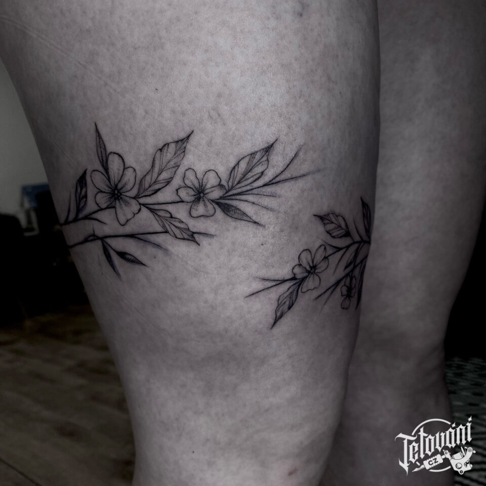 Tetování květiny kolem stehna