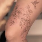 Tetování květiny, kolibřík na stehno