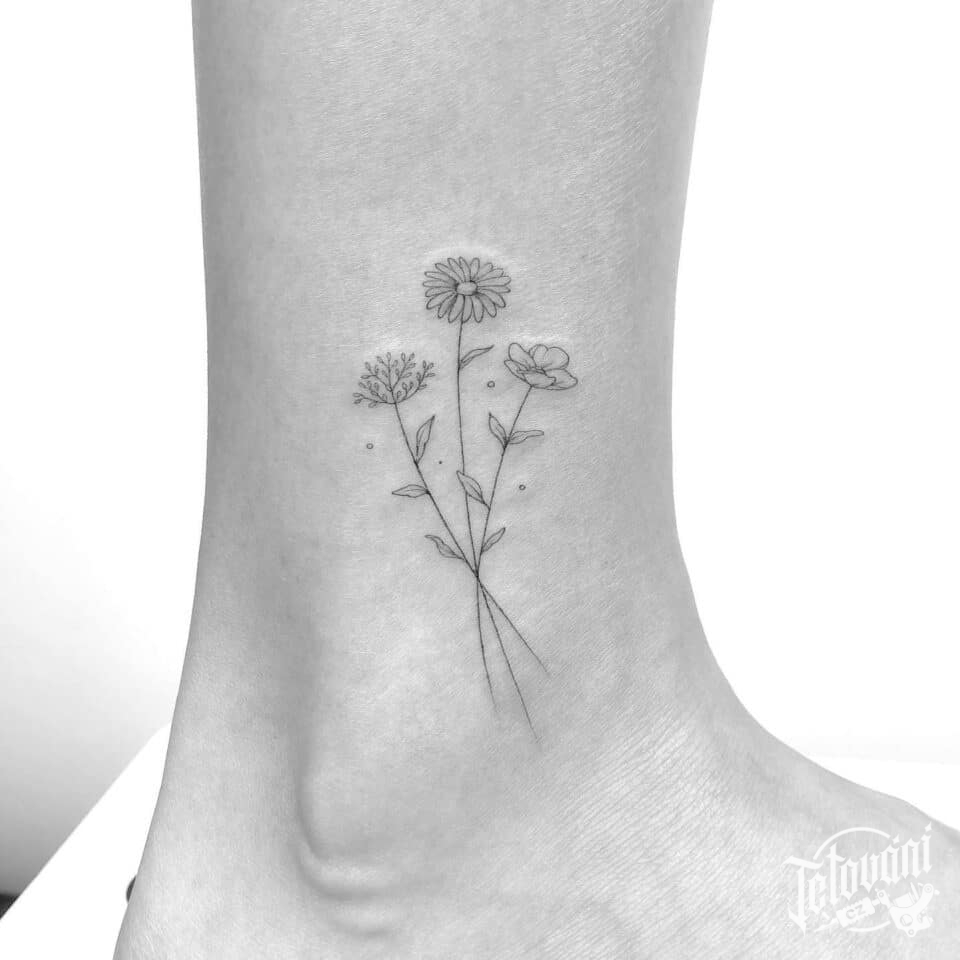 Tetování květiny, kopretina, luční kvítí na kotníku