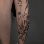 Tetování květiny, kopretiny, luční kvítí na lýtku