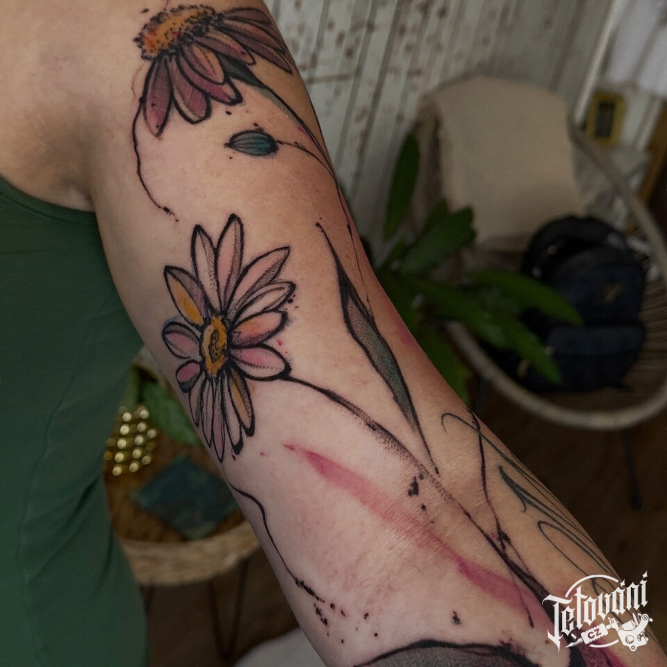 Tetování květiny, kopretiny na paži