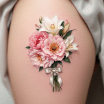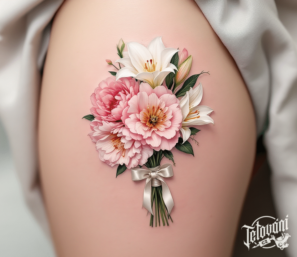 Tetování květiny, kytice na stehně
