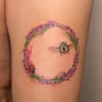 Tetování květiny, levandule a zvířata, včela a beruška na stehno