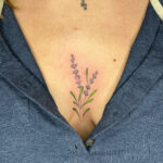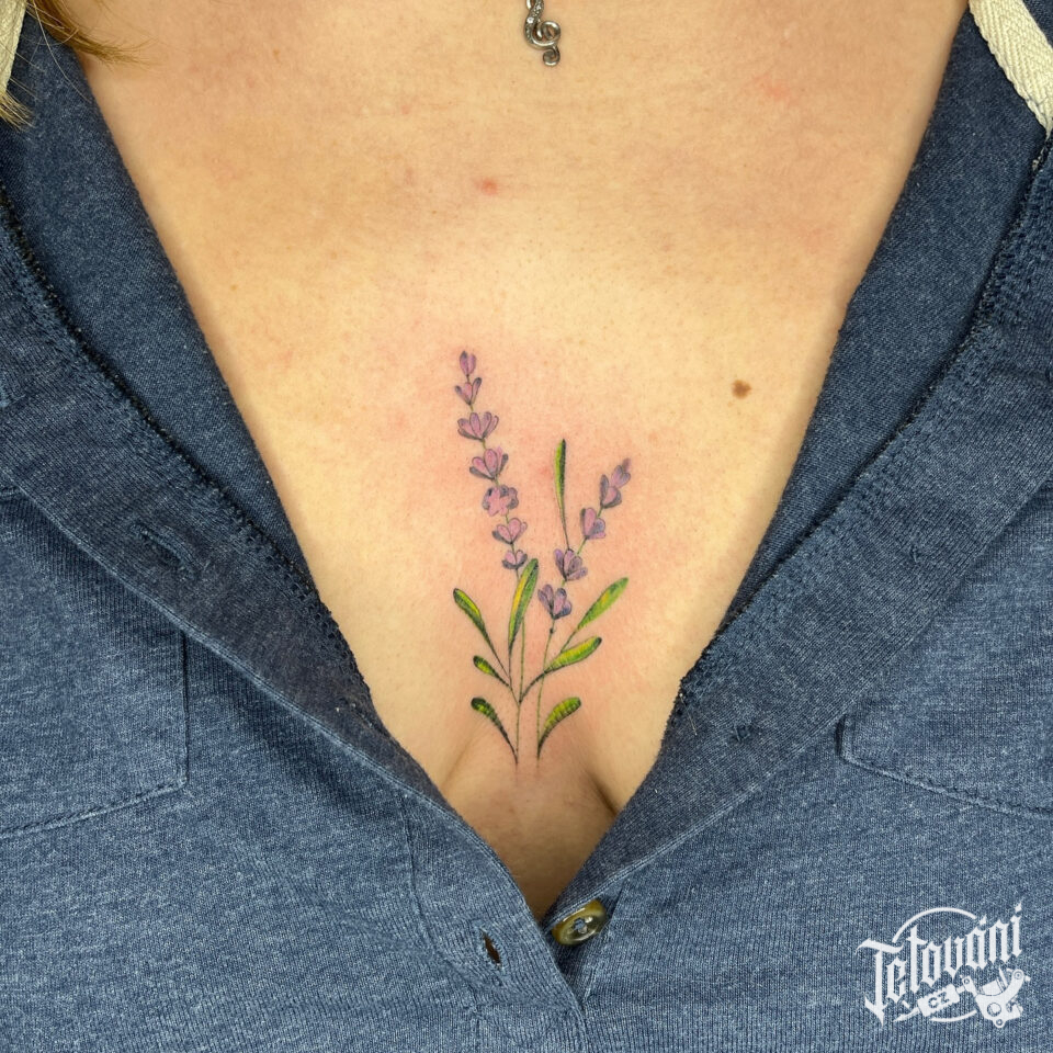 Tetování květiny, levandule mezi prsa