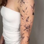 Tetování květiny, lilie, zvíře, pták, kolibřík, rukáv