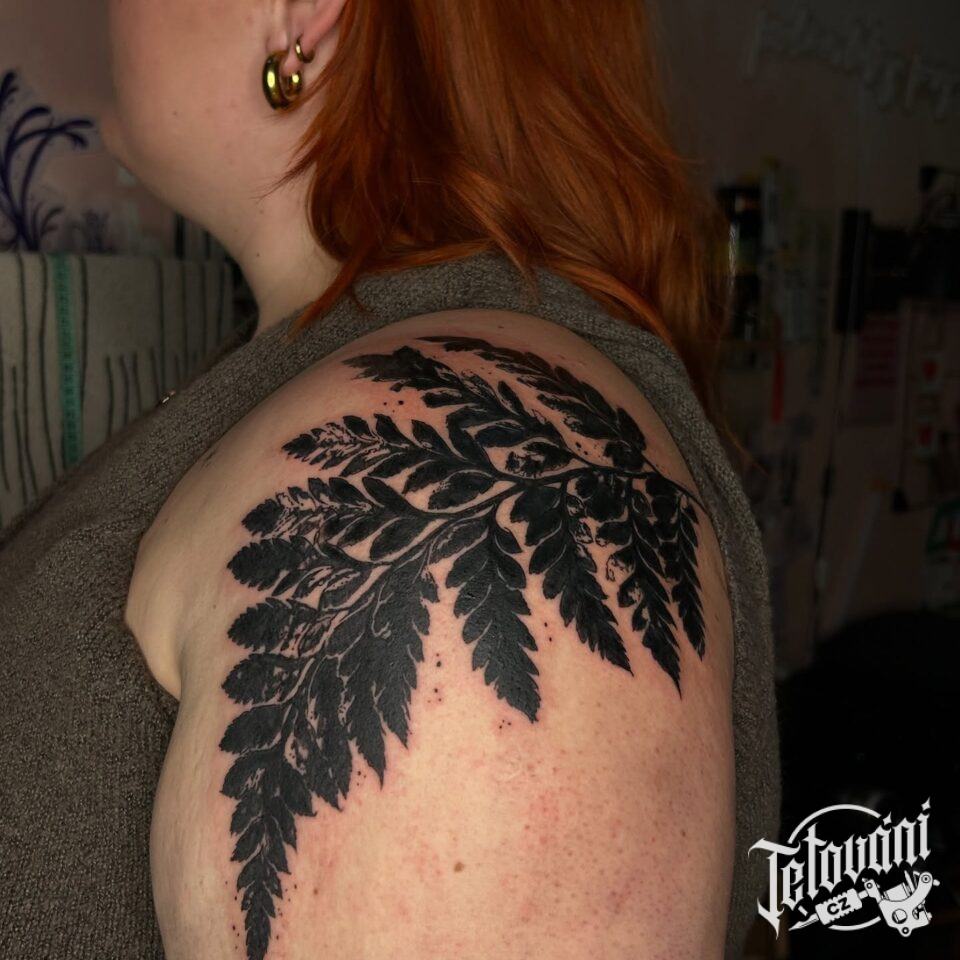 Tetování květiny, list kapradí na rameno