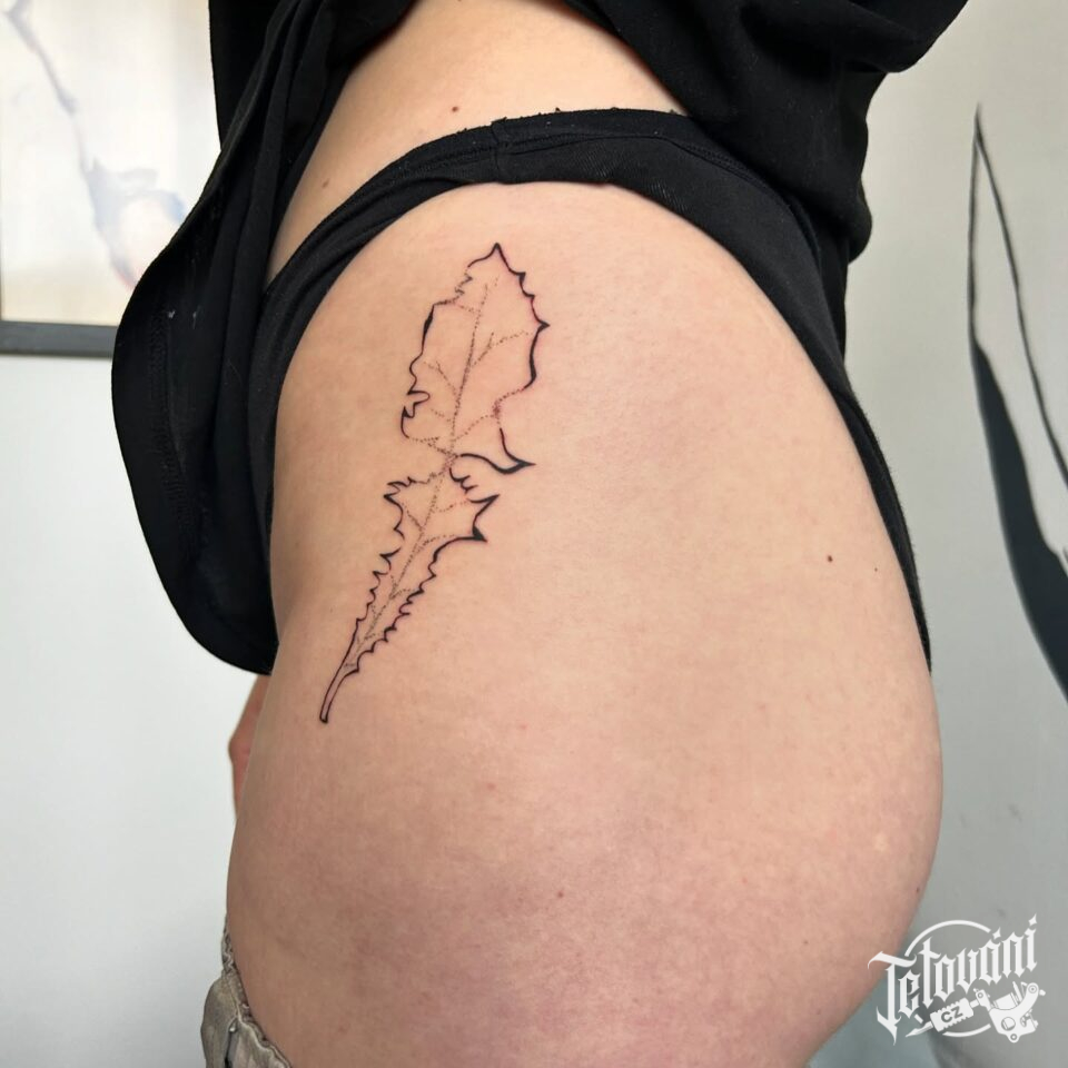 Tetování květiny, list na bok stehna