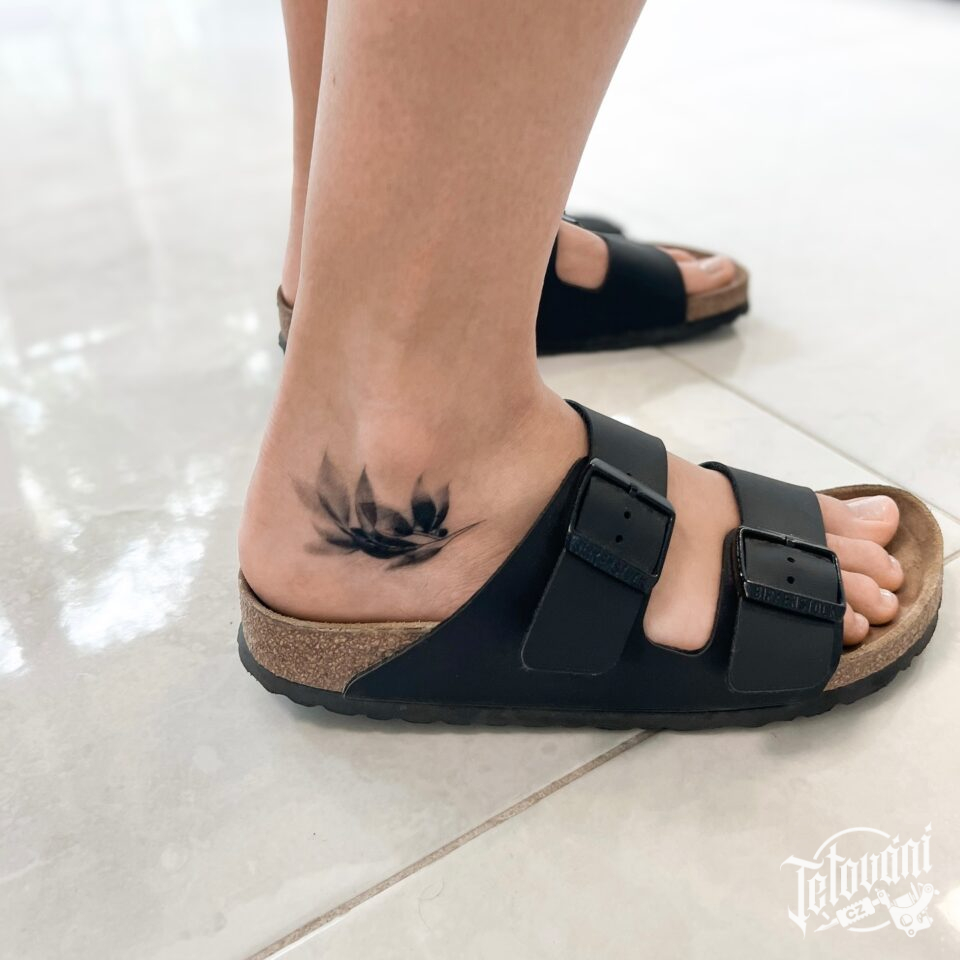 Tetování květiny, listy na kotníku