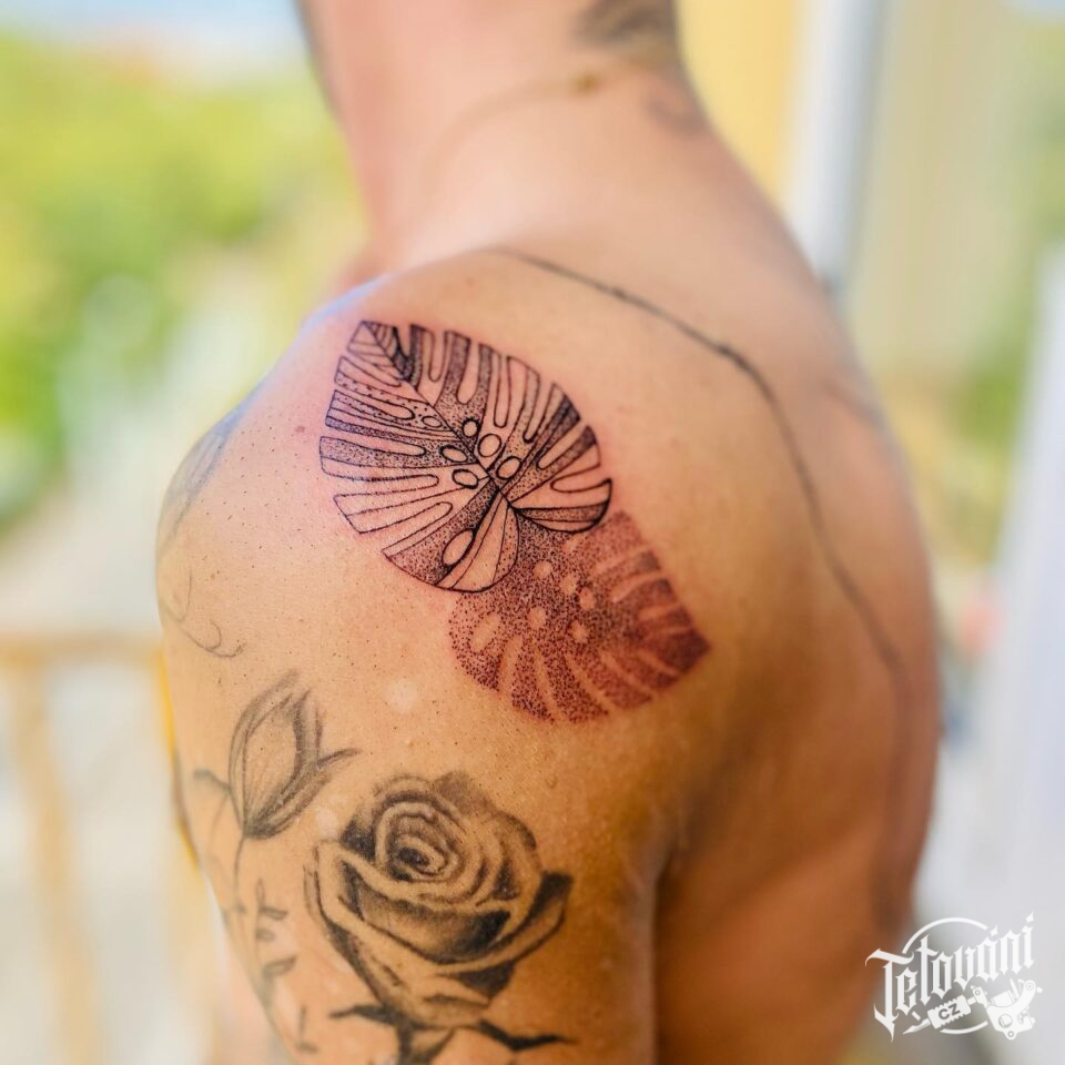 Tetování květiny, listy na rameni