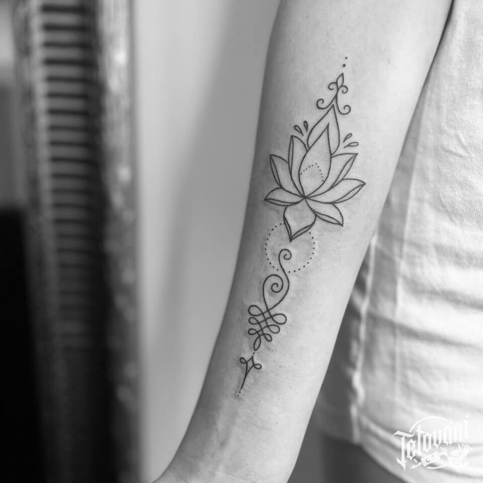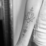 Tetování květiny, lotos a ornamenty na předloktí