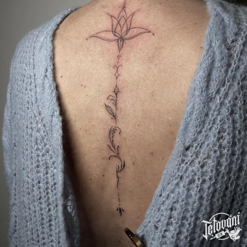 Tetování květiny, lotos na zádech
