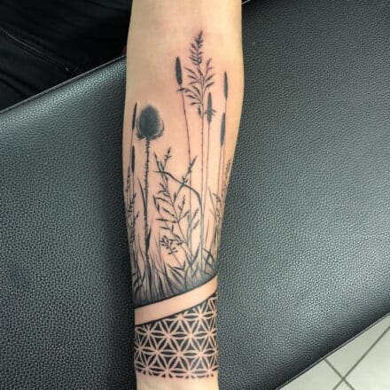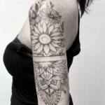 Tetování květiny luční kvítí a mandala s ornamenty na rameno