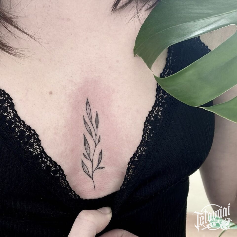 Tetování květiny, luční kvítí mezi prsa