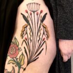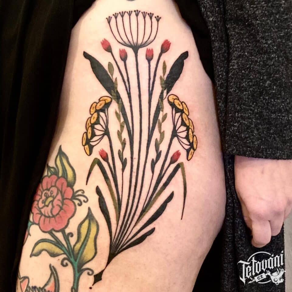Tetování květiny, luční kvítí na bok stehna