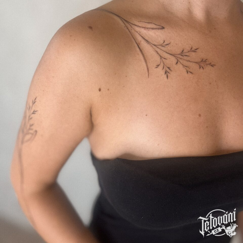 Tetování květiny, luční kvítí na hrudi