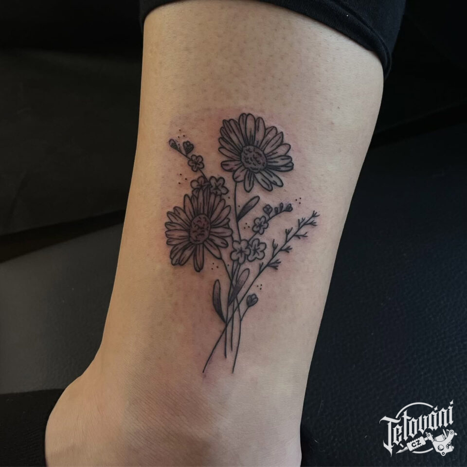 Tetování květiny, luční kvítí na kotník