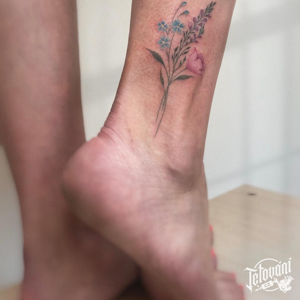 Tetování květiny, luční kvítí na kotník