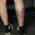 Tetování květiny, luční kvítí na lýtku