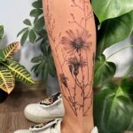 Tetování květiny, luční kvítí na lýtku