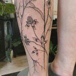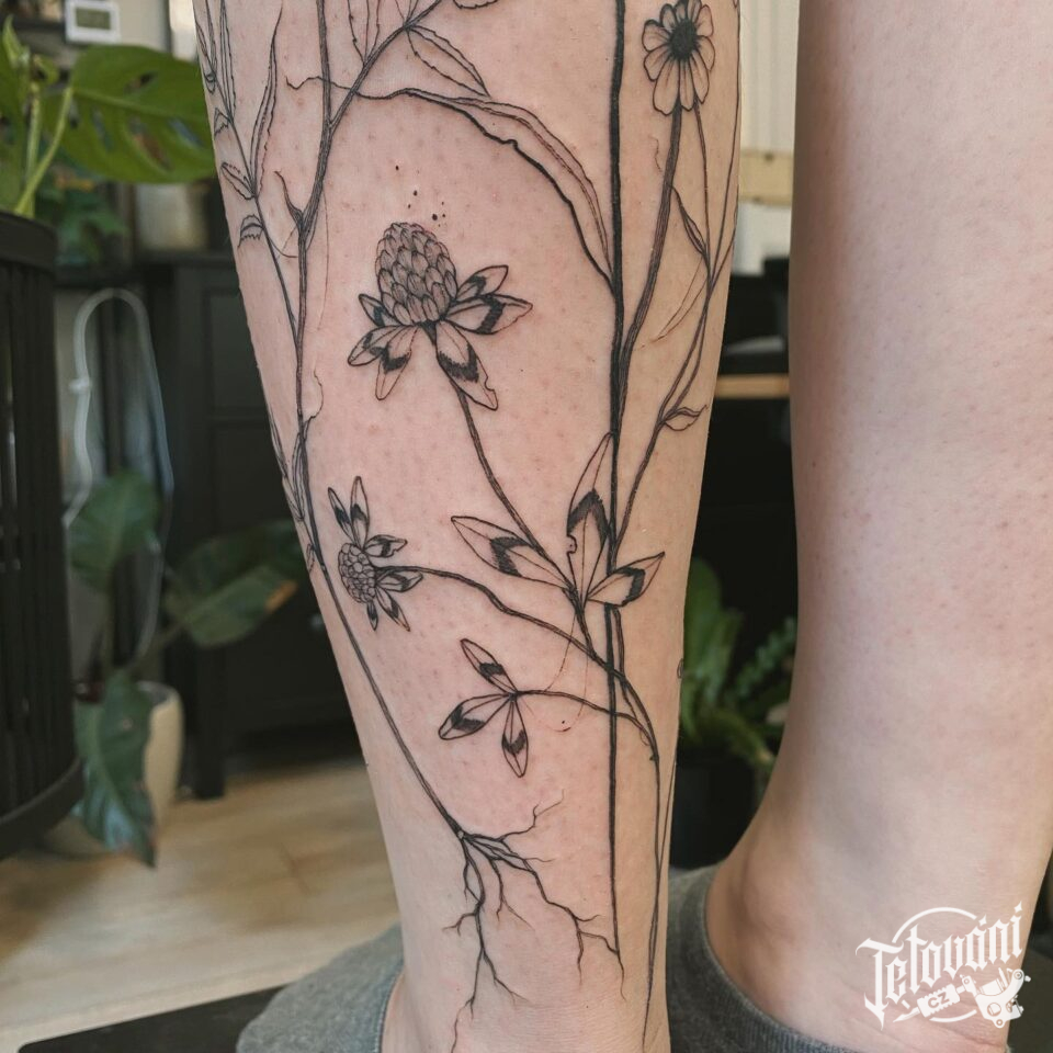 Tetování květiny, luční kvítí na lýtku