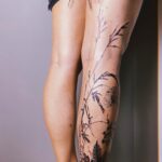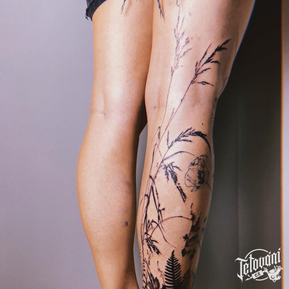 Tetování květiny, luční kvítí na lýtku